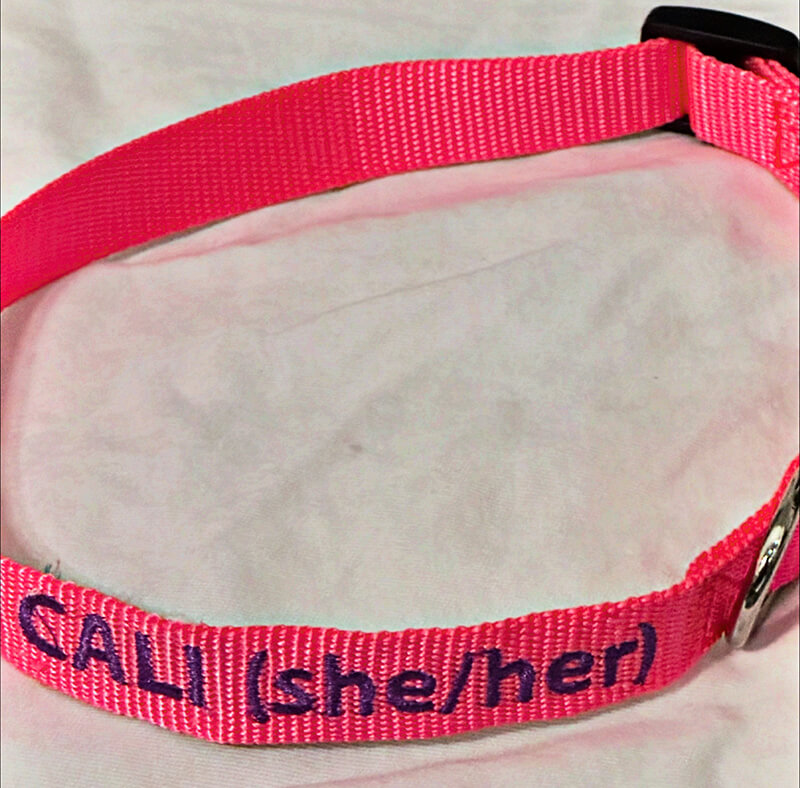Tired of your dog being referred to as the wrong gender? Well – you can include your dog’s pronouns on the collar as well while you’re embroidering the name!