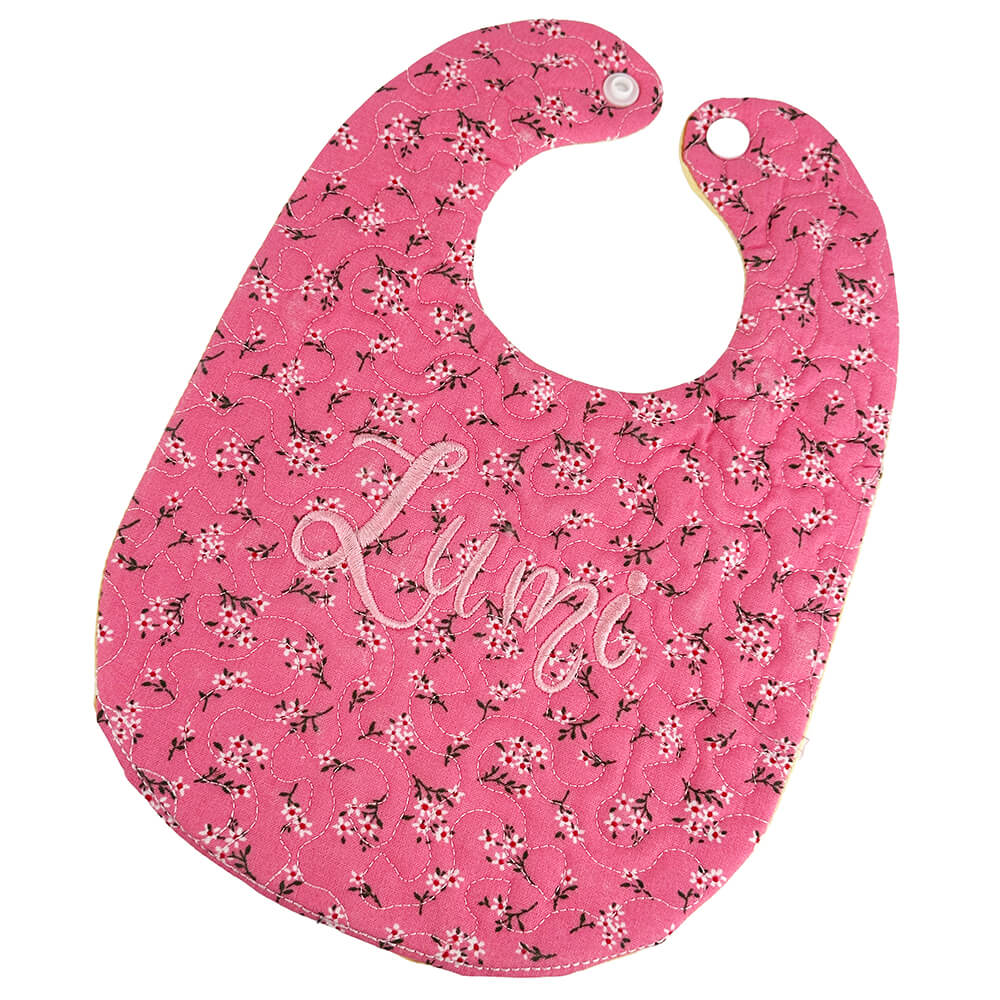 Create an adorable and practical baby bib entirely in your embroidery hoop with this quilted in-the-hoop design. A quick stitch that’s easy to make.