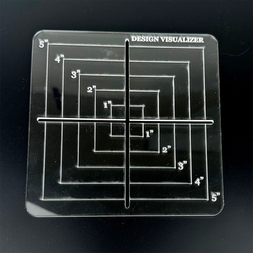 Clearly mark vertical and horizontal crosshairs to ensure your design is straight and perfectly balanced.